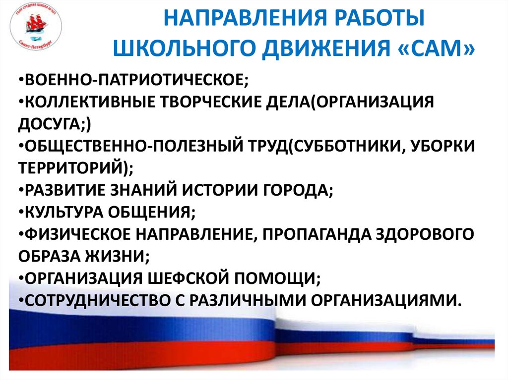 НАПРАВЛЕНИЯ РАБОТЫШКОЛЬНОГО ДВИЖЕНИЯ «САМ»