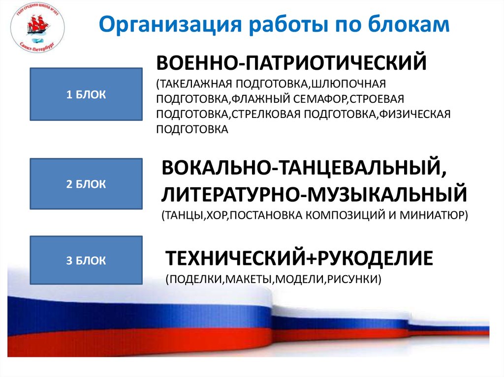 Организация работы по блокамВОЕННО-ПАТРИОТИЧЕСКИЙ