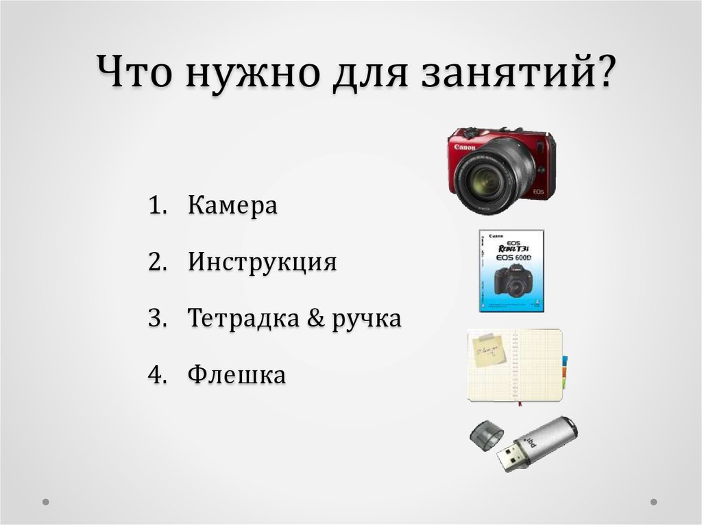 Что нужно для занятий?1. Камера