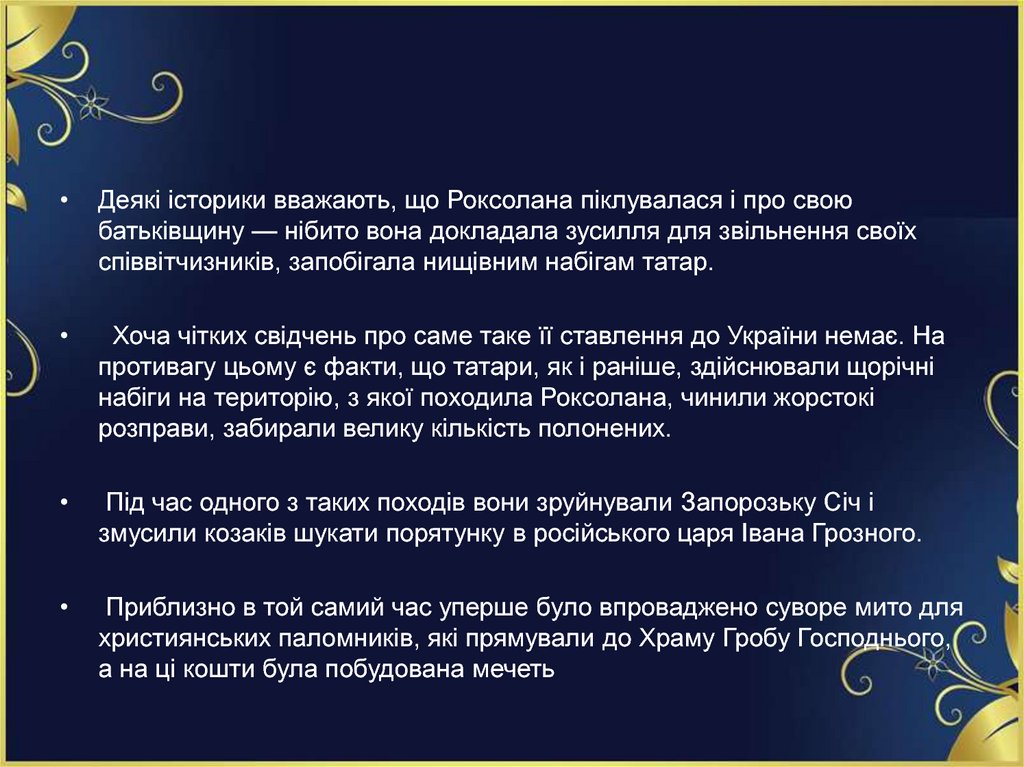 • З Роксолани розпочався період, який називається «правлінняпривілейованих жінок».