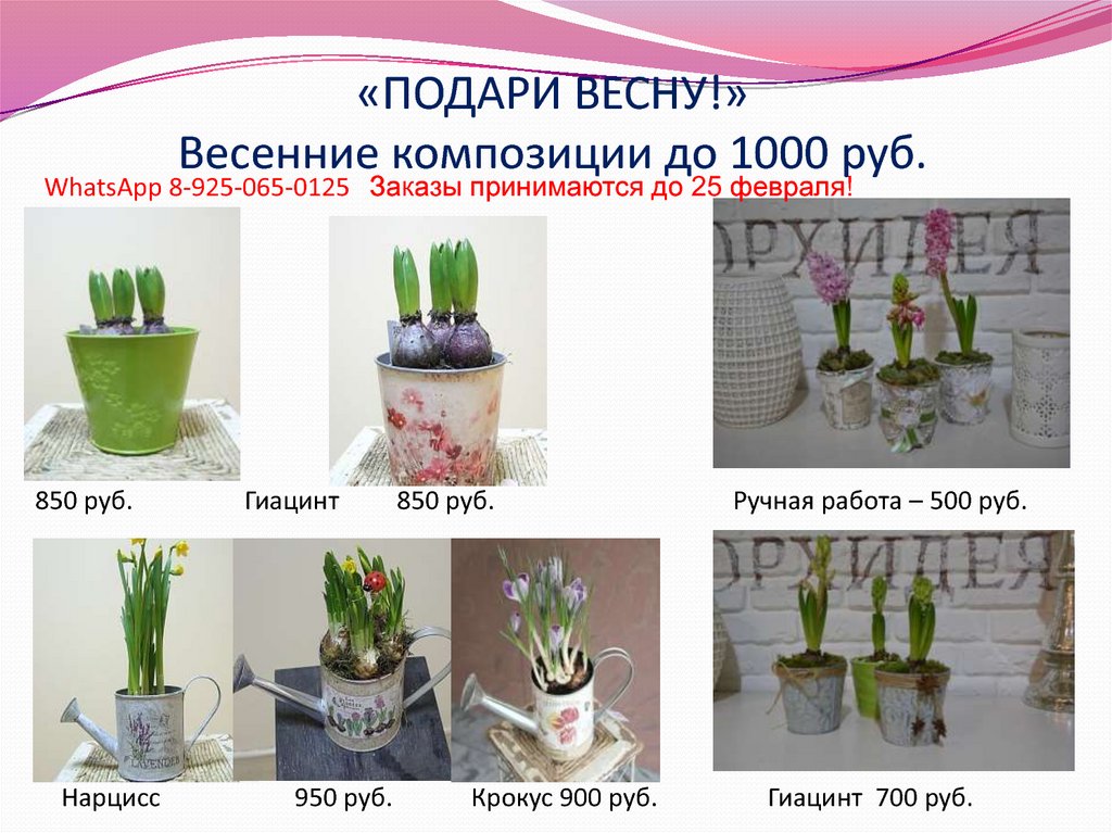 1. «ПОДАРИ ВЕСНУ!» Весенние композиции до 1000 руб.
