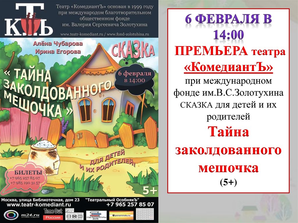 Премьера театра «Комедиантъ». Тайна заколдованного мешочка (5+)