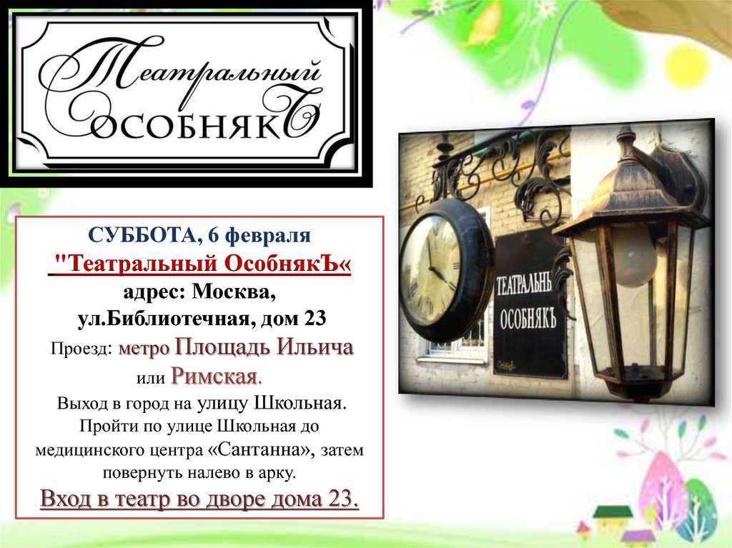 СУББОТА, 6 февраля"Театральный ОсобнякЪ«