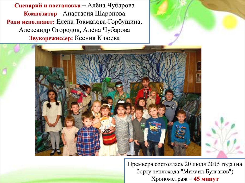 Сценарий и постановка – Алёна ЧубароваКомпозитор - Анастасия Шаронова
