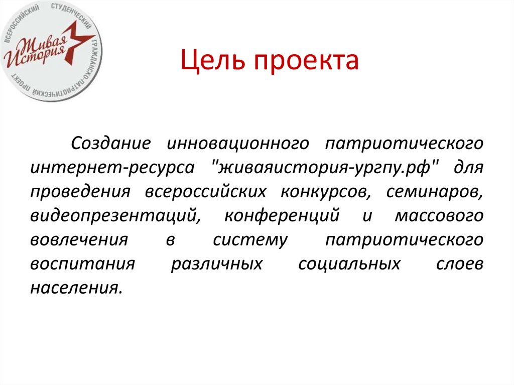 Цель проектаСоздание инновационного патриотического