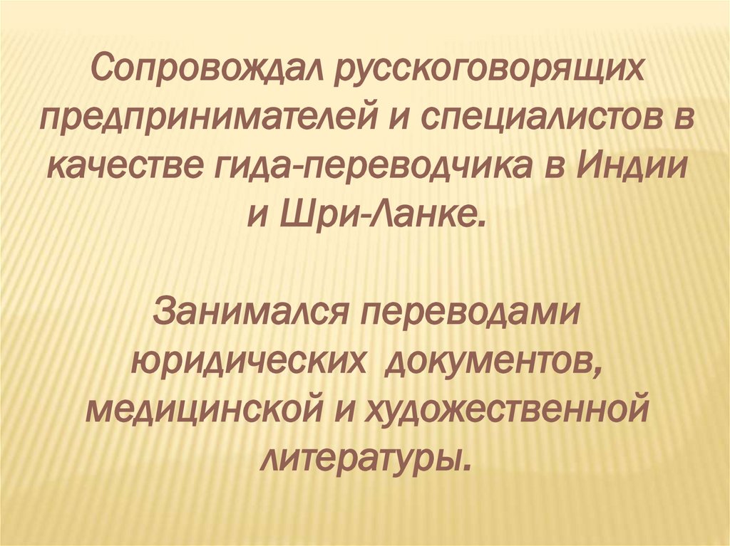 Сопровождал русскоговорящихпредпринимателей и специалистов в