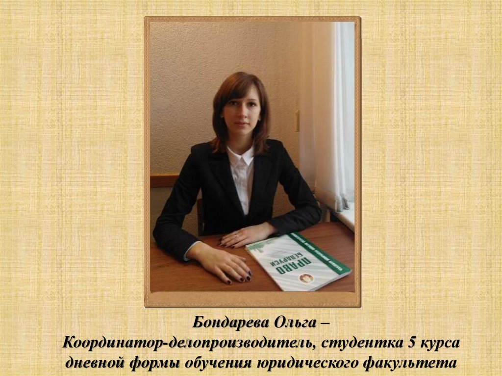 Бондарева Ольга –Координатор-делопроизводитель, студентка 5 курса