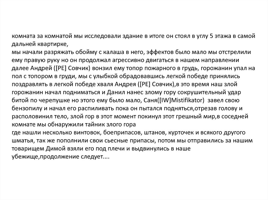 далее Андрей ([PE] Совчик) вонзил ему топор пожарного в грудь, горожанин упал на