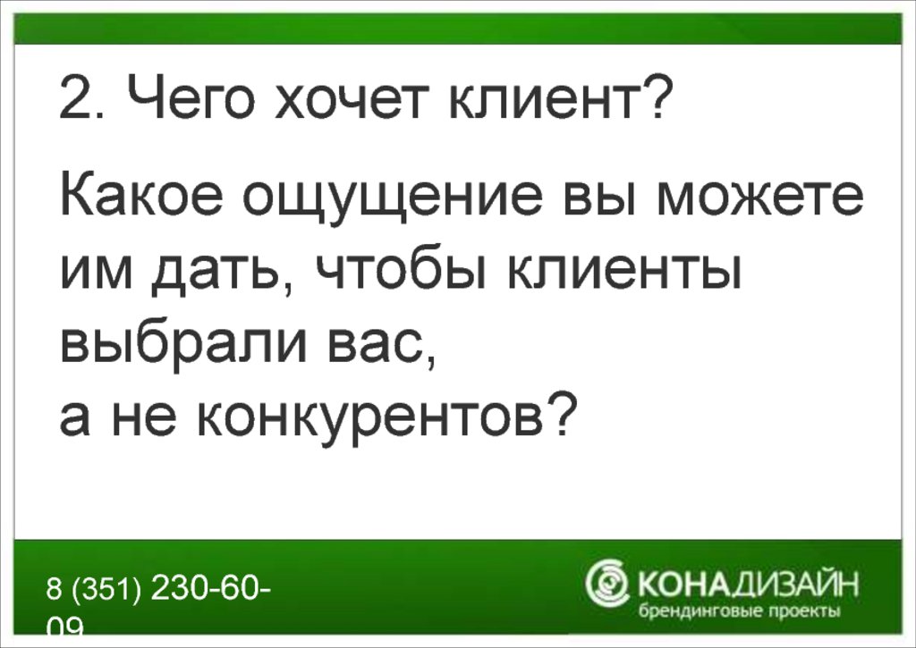 2. Чего хочет клиент?Какое ощущение вы можете