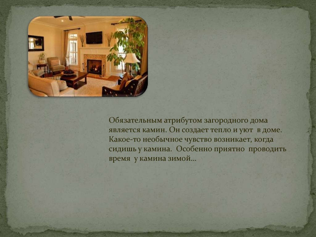 Обязательным атрибутом загородного домаявляется камин. Он создает тепло и уют в доме.