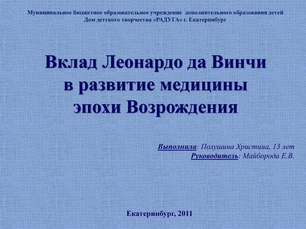Вклад Леонардо да Винчи в развитие медицины эпохи Возрождения