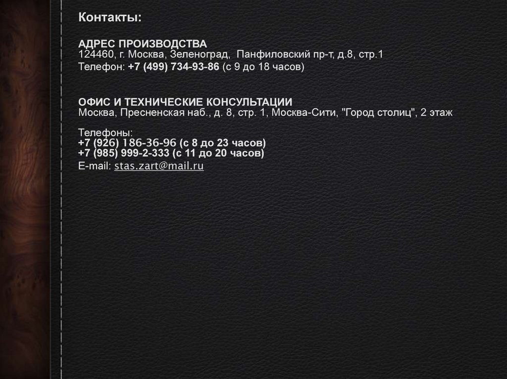 Контакты:АДРЕС ПРОИЗВОДСТВА