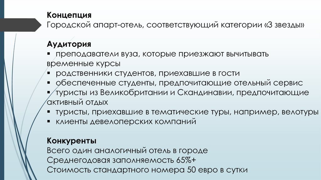 КонцепцияГородской апарт-отель, соответствующий категории «3 звезды»