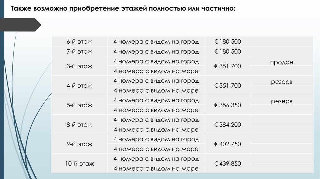 Также возможно приобретение этажей полностью или частично:6-й этаж