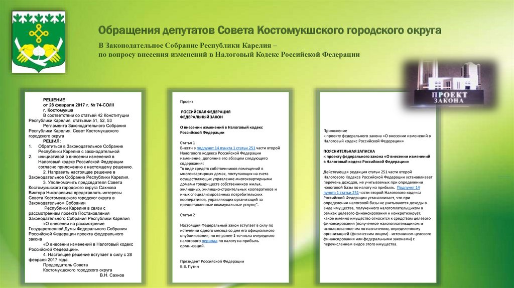 Заседания Совета Костомукшского городского округаНалог на имущество физических лиц в соответствии с изменениями в законодательстве РФ