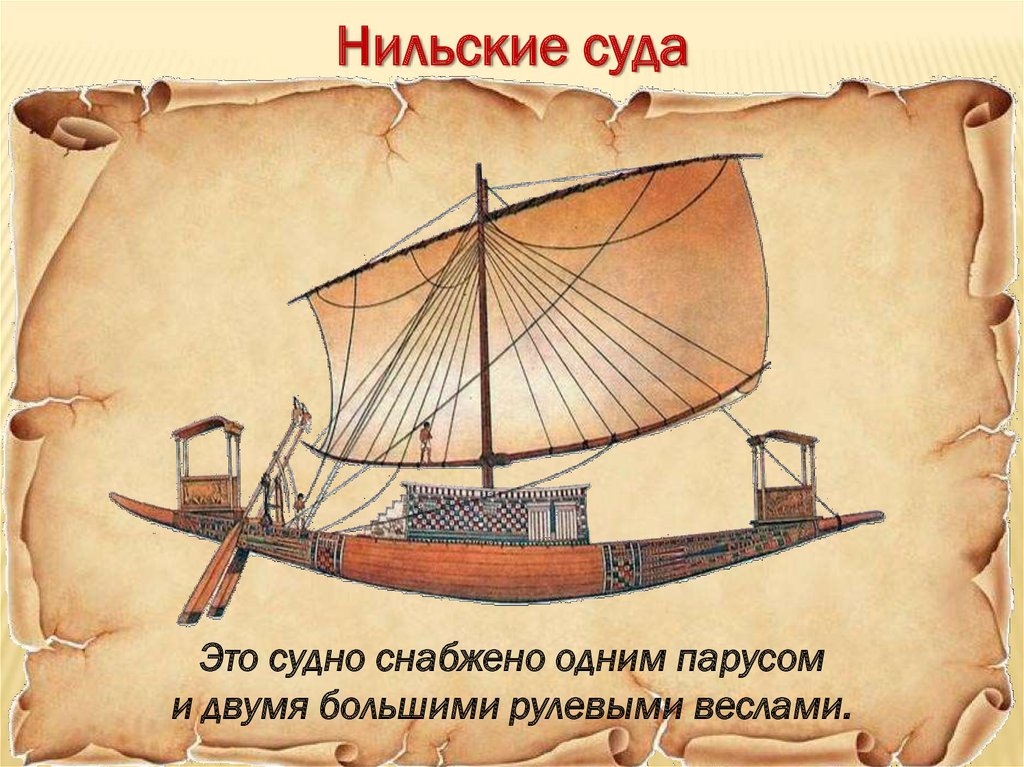 Нильские судаЭто судно снабжено одним парусом