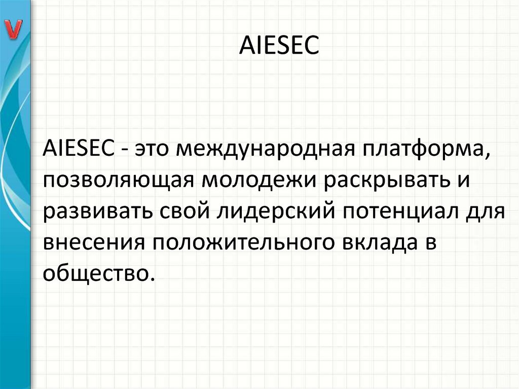 12. AIESEC– это глобальная, неполитическая, независимая, некоммерческая организация, полностью управляемая студентами и недавними