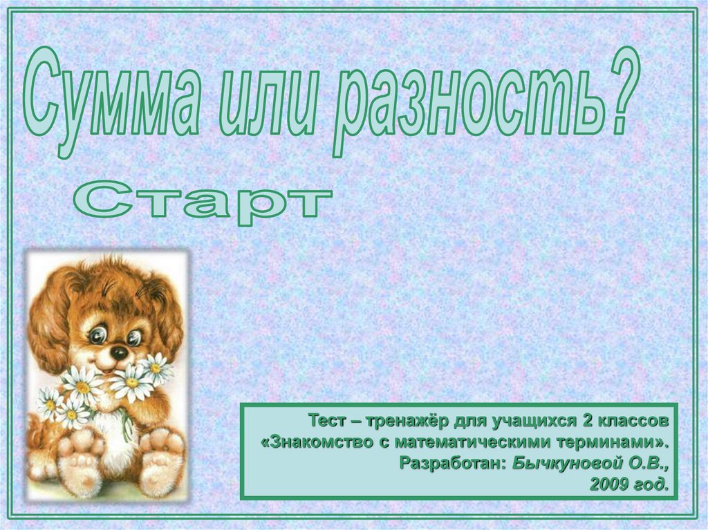 Тест-тренажёр для учащихся 2 классов. «Знакомство с математическими терминами». Сумма и разность