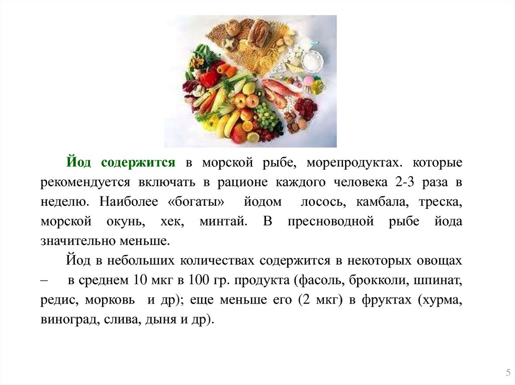 неделю. Наиболее «богаты» йодом лосось, камбала, треска,