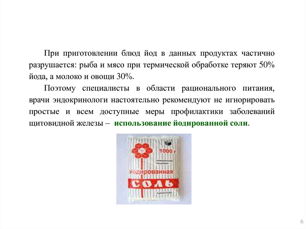 При приготовлении блюд йод в данных продуктах частичноразрушается: рыба и мясо при термической обработке теряют 50%