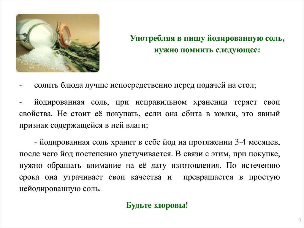 - йодированная соль хранит в себе йод на протяжении 3-4 месяцев,