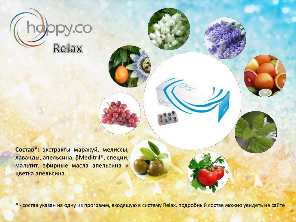 * - состав указан на одну из программ, входящую в систему Relax, подробный состав можно увидеть на сайте