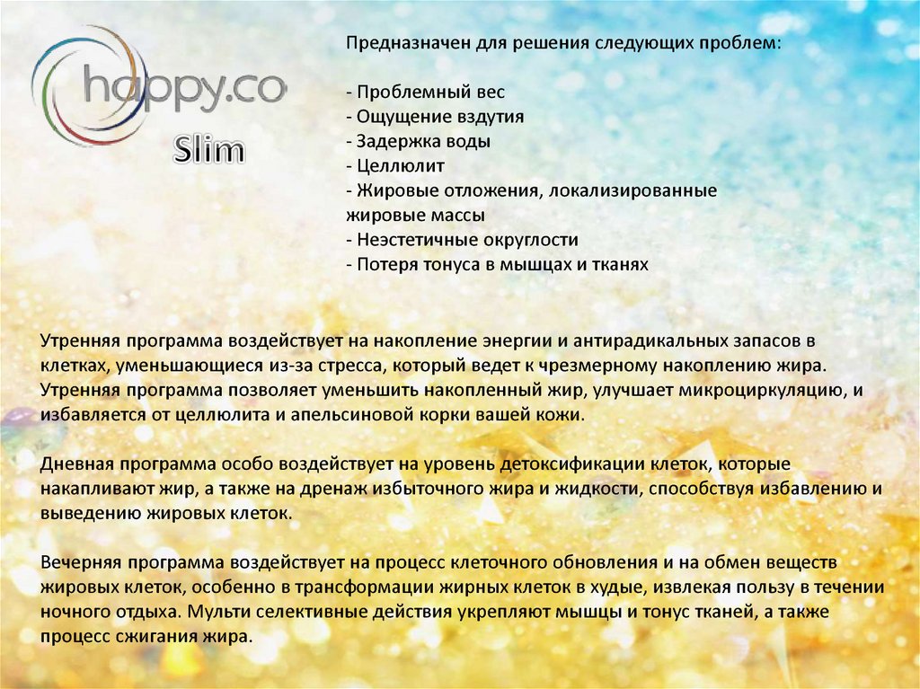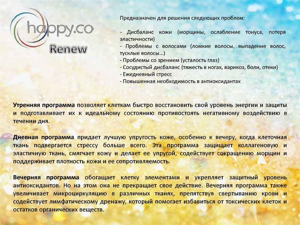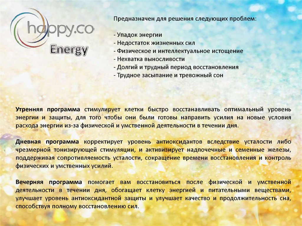 Предназначен для решения следующих проблем:- Упадок энергии