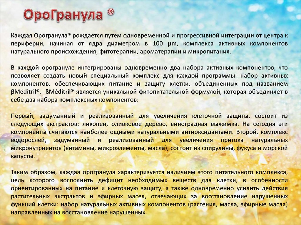 понятия Орохронодиетология®, Орогранула®, ßMéditril® - являются зарегистрированными марками