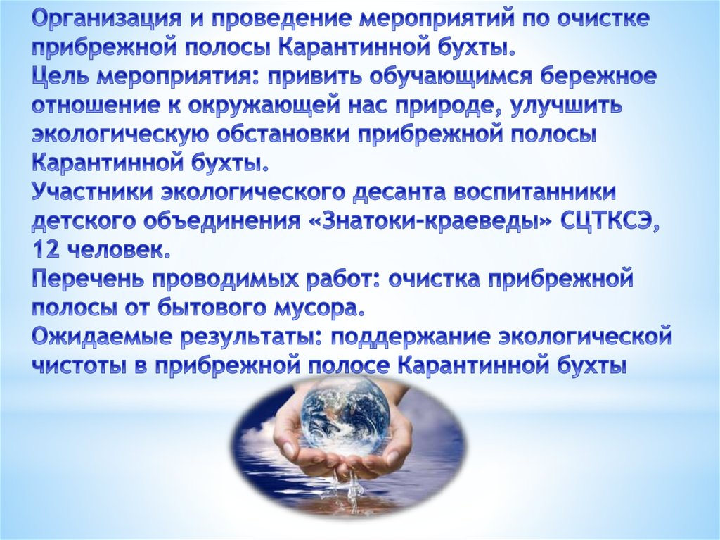 - Беседы по экологическим проблемам Чёрного моря- Определение участков для очистки прибрежной полосы
