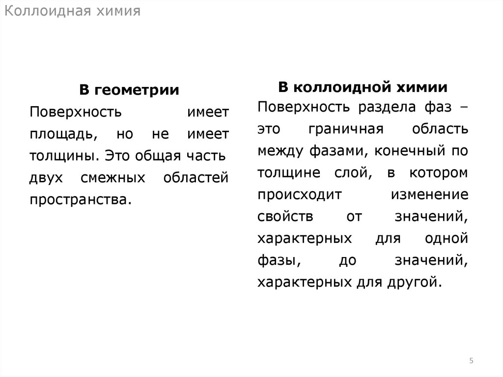 Коллоидная химияВ геометрии