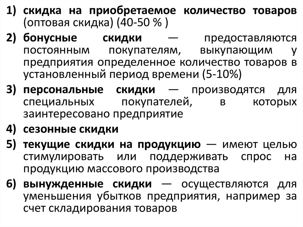 5) текущие скидки на продукцию — имеют целью