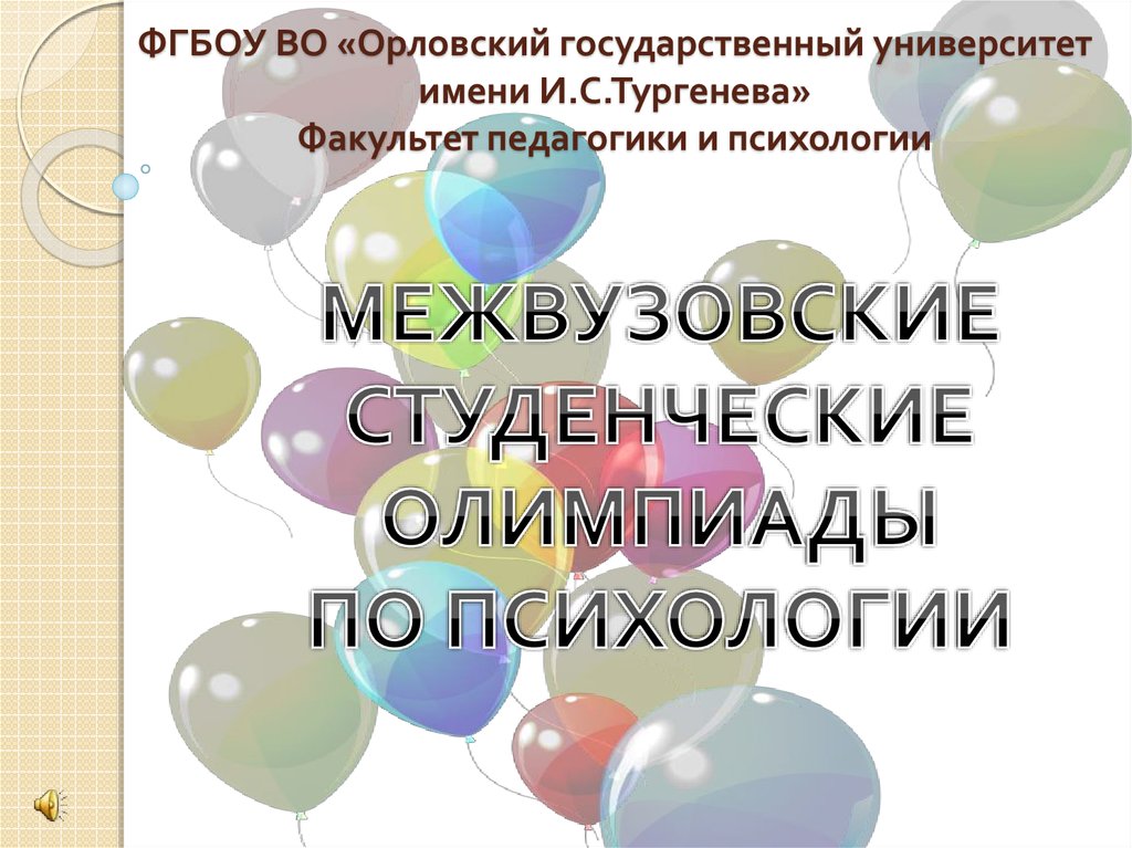 ФГБОУ ВО «Орловский государственный университет имени И.С.Тургенева» Факультет педагогики и психологии