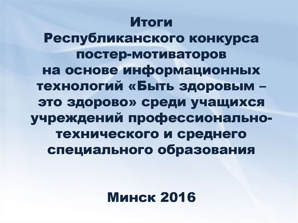 1. Итоги Республиканского конкурса постер-мотиваторов на основе информационных технологий «Быть здоровым – это здорово» среди