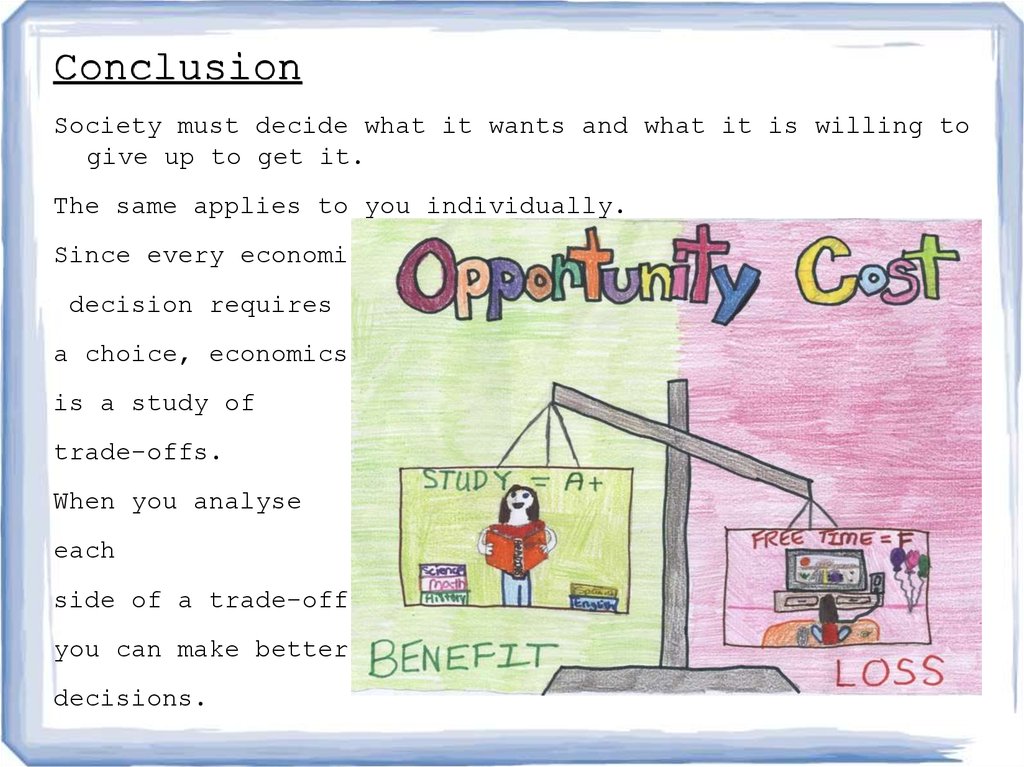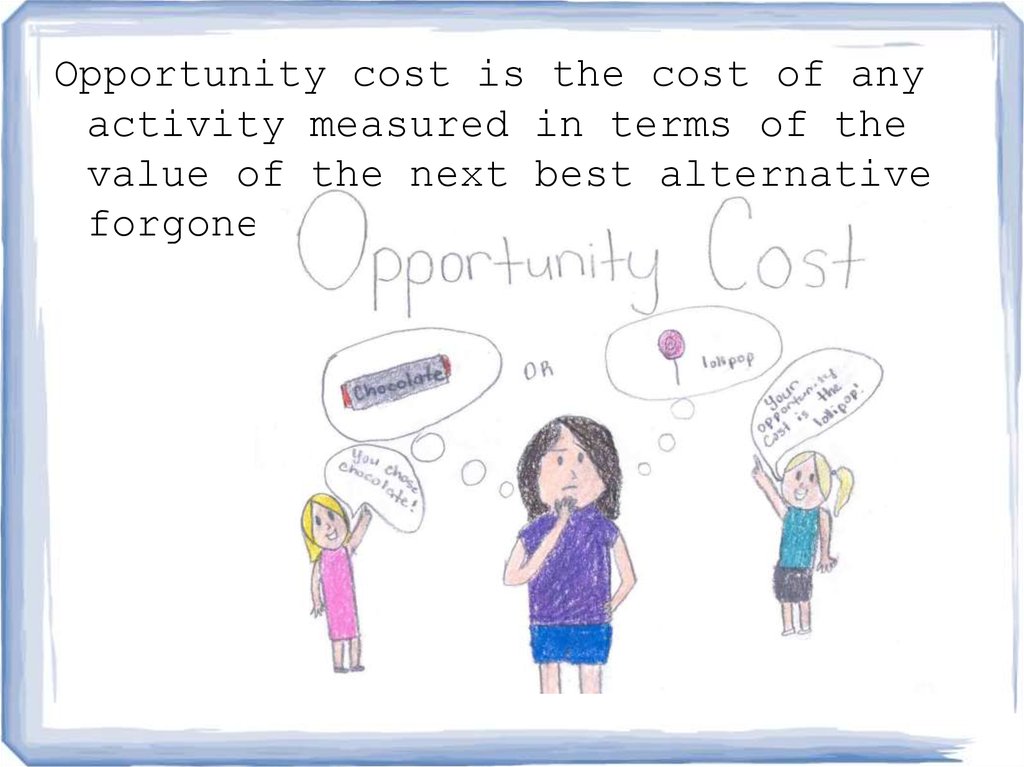 Opportunity cost is the cost of anyactivity measured in terms of the