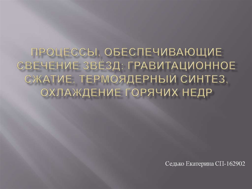 1. Процессы, обеспечивающие свечение звёзд: гравитационное сжатие, термоядерный синтез, охлаждение горячих недр