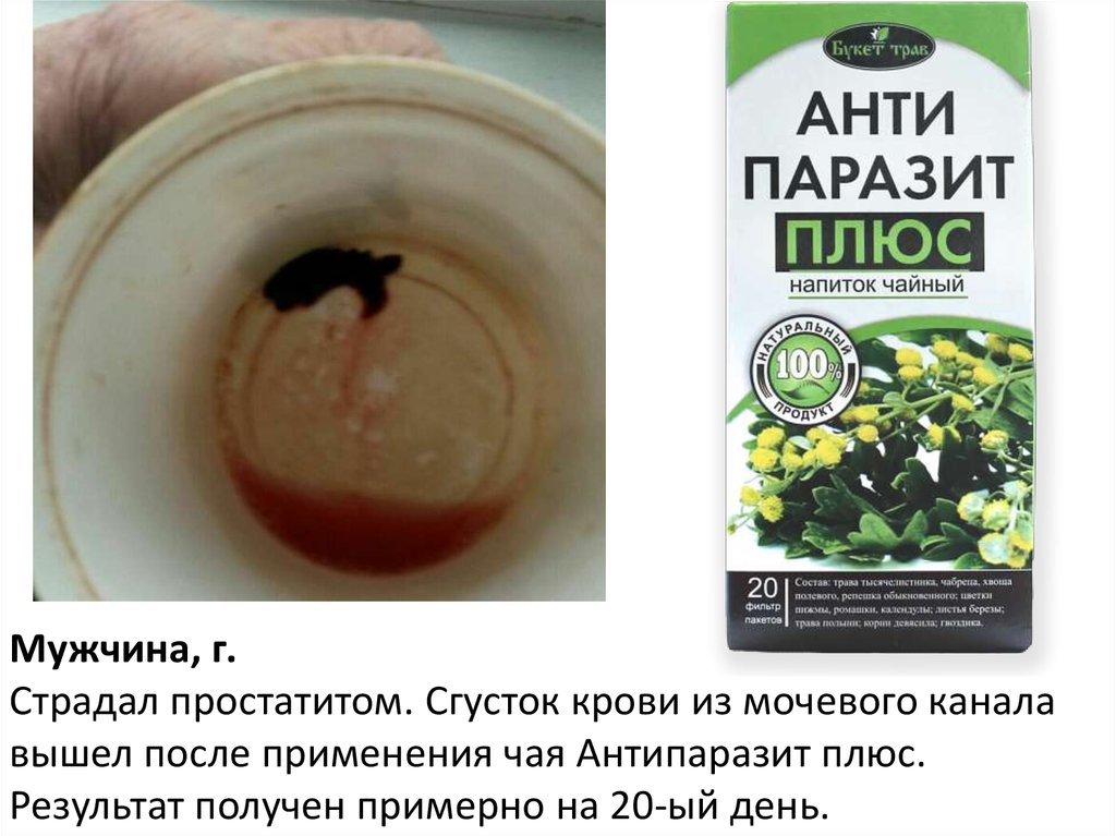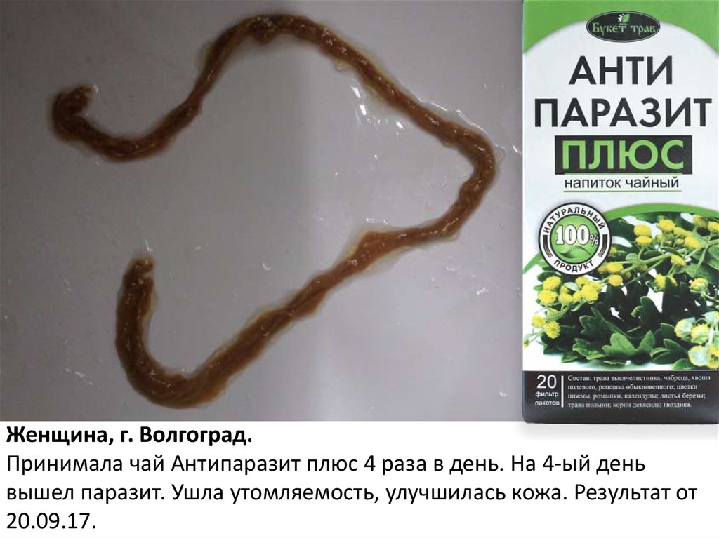 Женщина, г. Волгоград.Принимала чай Антипаразит плюс 4 раза в день. На 4-ый день