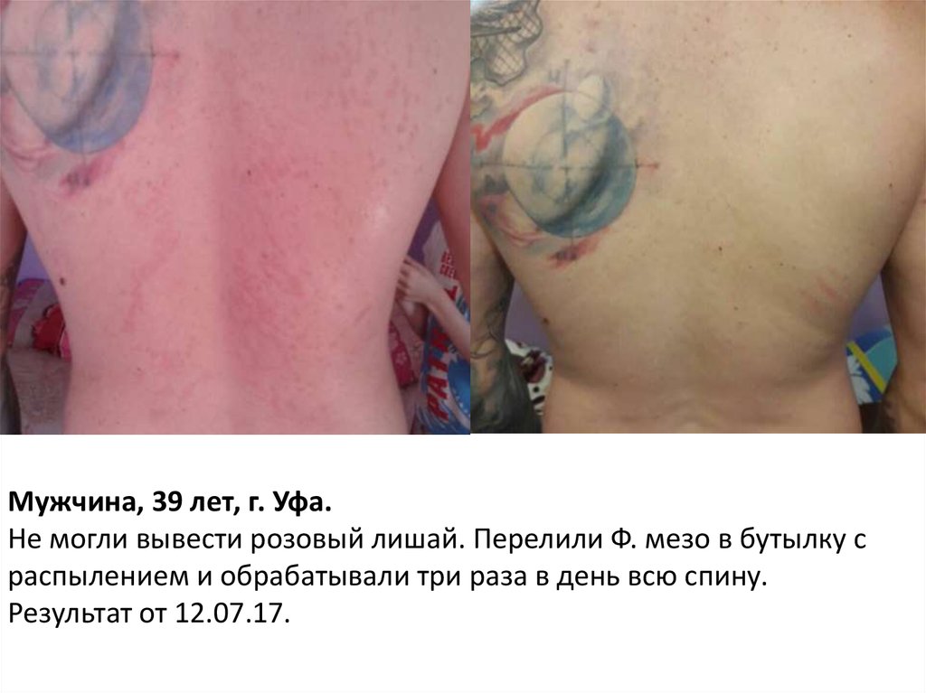 Мужчина, 39 лет, г. Уфа.Не могли вывести розовый лишай. Перелили Ф. мезо в бутылку с