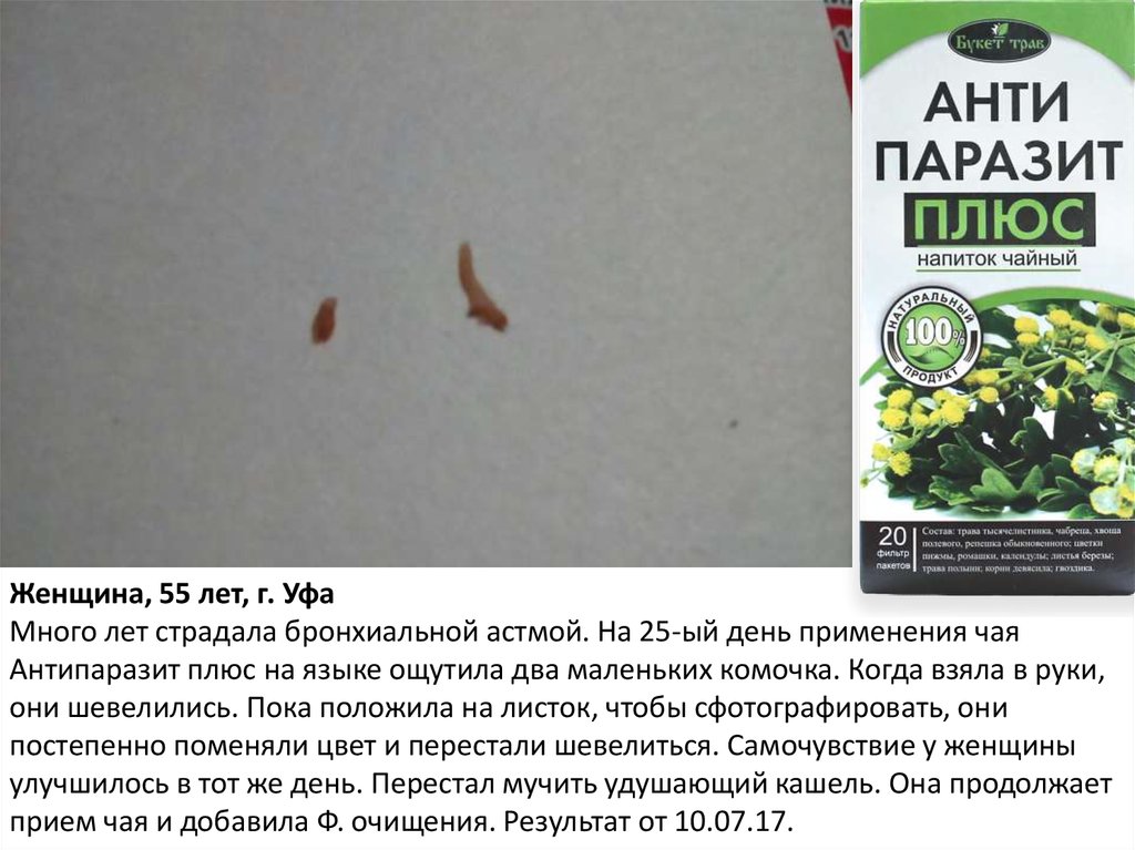 Женщина, г. Мелеуз.Чай Антипаразит плюс + ф. очищение. Через десять дней начались