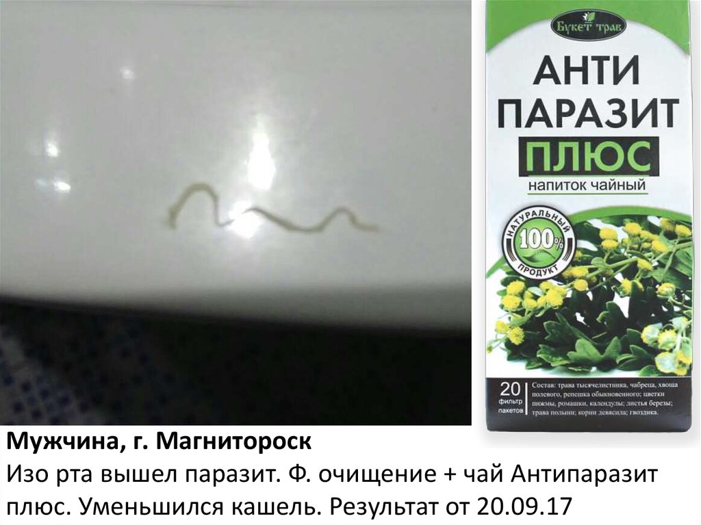 Мужчина, г. МагнитороскИзо рта вышел паразит. Ф. очищение + чай Антипаразит