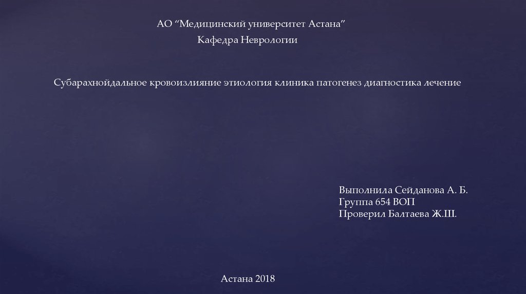 АО “Медицинский университет Астана”Кафедра Неврологии