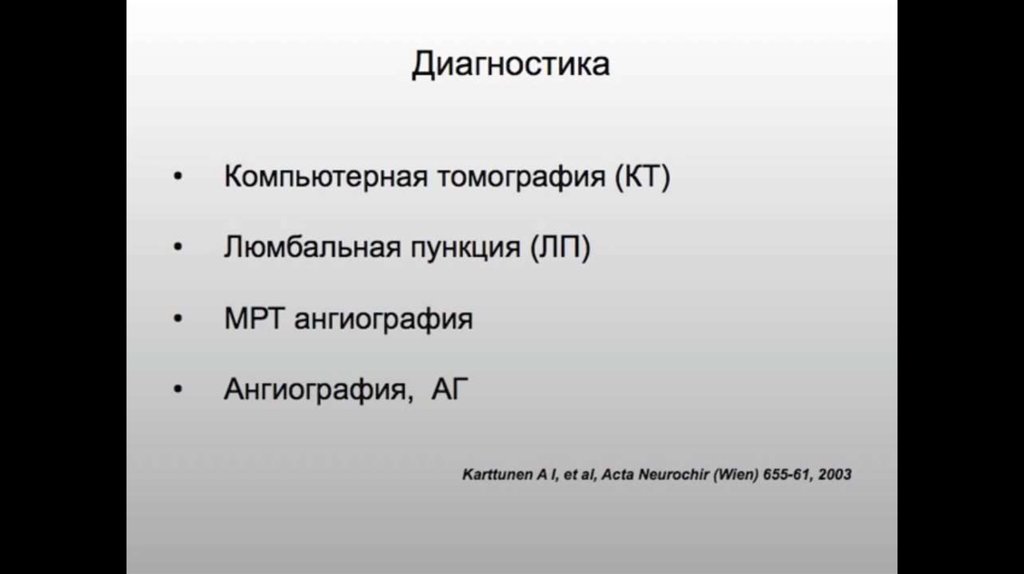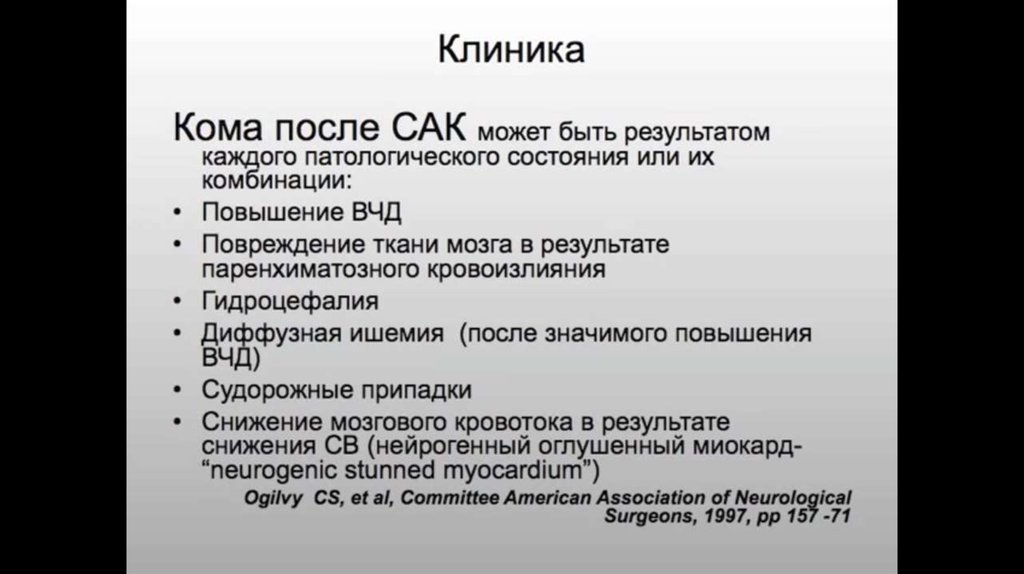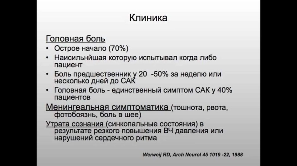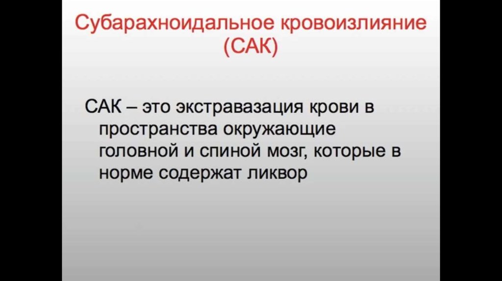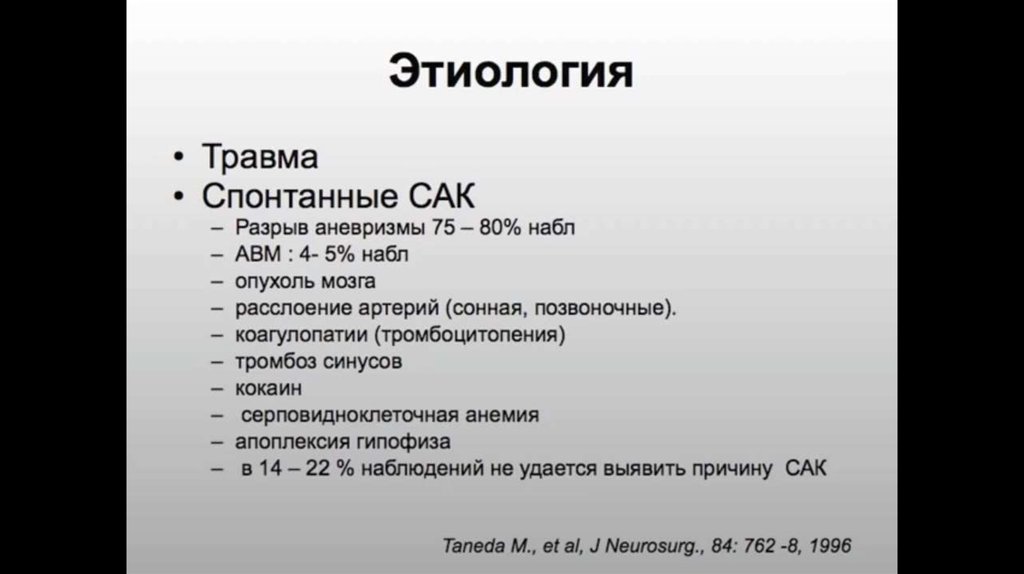 Субарахнойдальное кровоизлияние: этиология, клиника, патогенез, диагностика, лечение