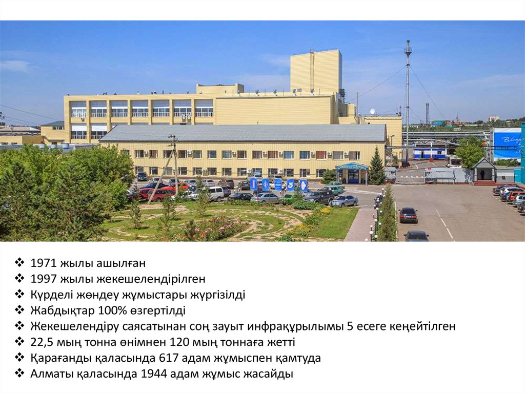 Жекешелендіру саясатынан соң зауыт инфрақұрылымы 5 есеге кеңейтілген