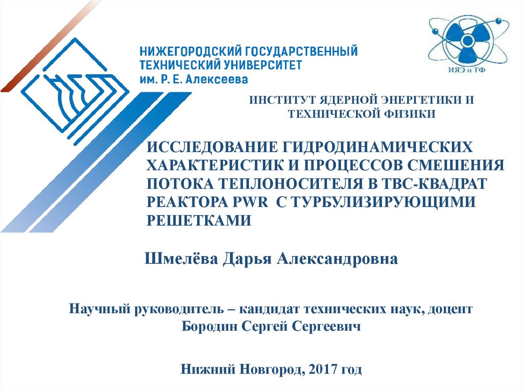 Исследование гидродинамических характеристик и процессов смешения потока теплоносителя в ТВС-квадрат реактора PWR