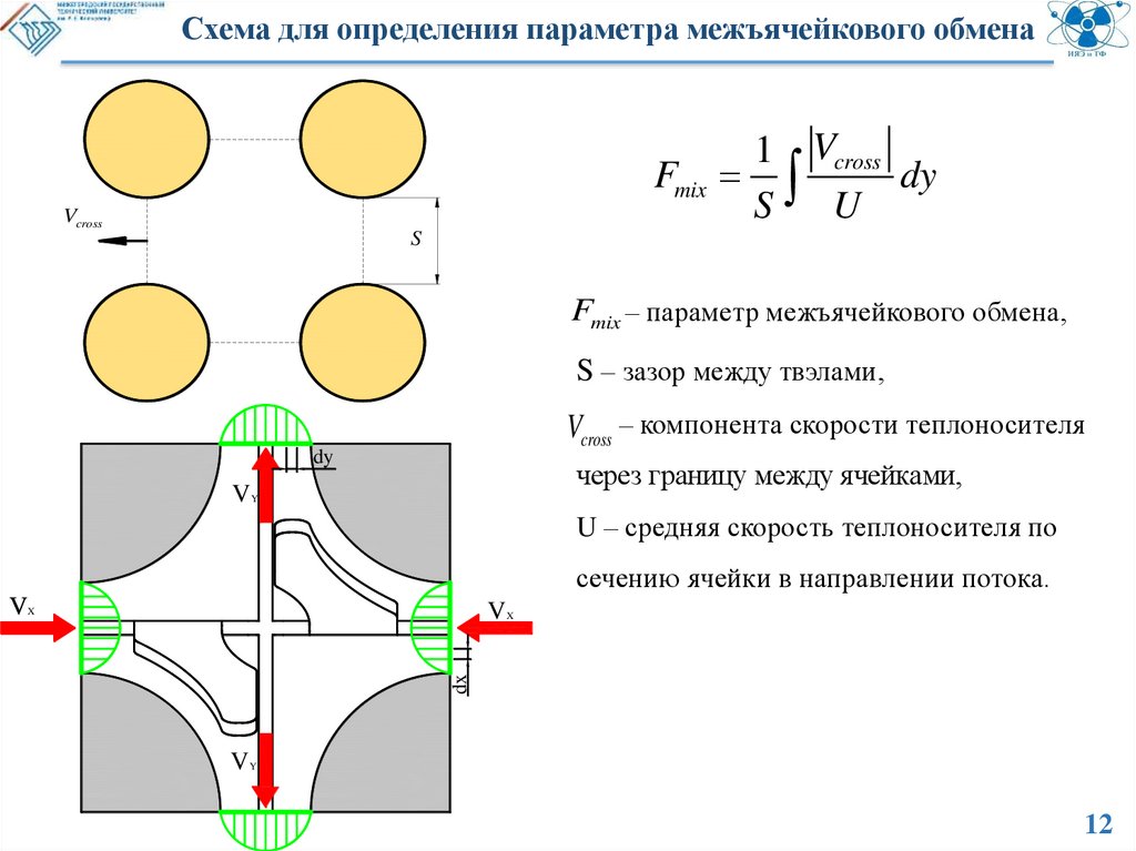 пределах ячеек и направленные турбулентные течения между ячейками кассеты согласно