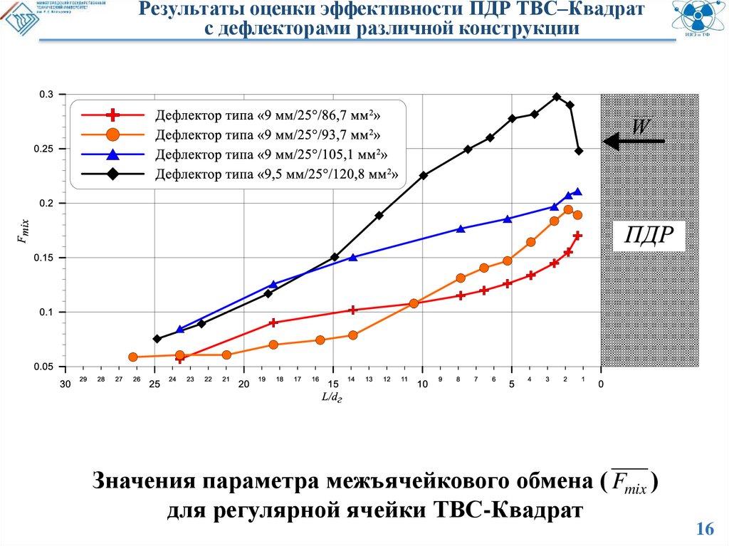 Оценка эффективности ПДР ТВС-Квадратс различными типами дефлекторов