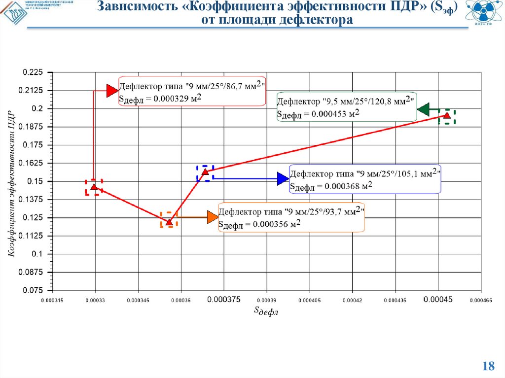 Зависимость «Коэффициента эффективности ПДР» (Sэф)от площади дефлектора