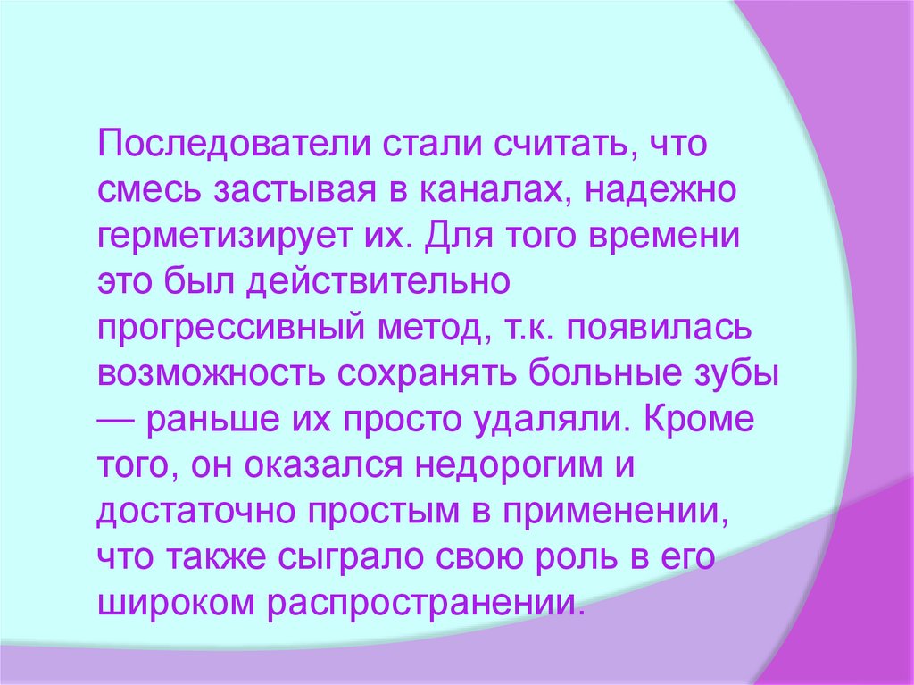 Последователи стали считать, чтосмесь застывая в каналах, надежно