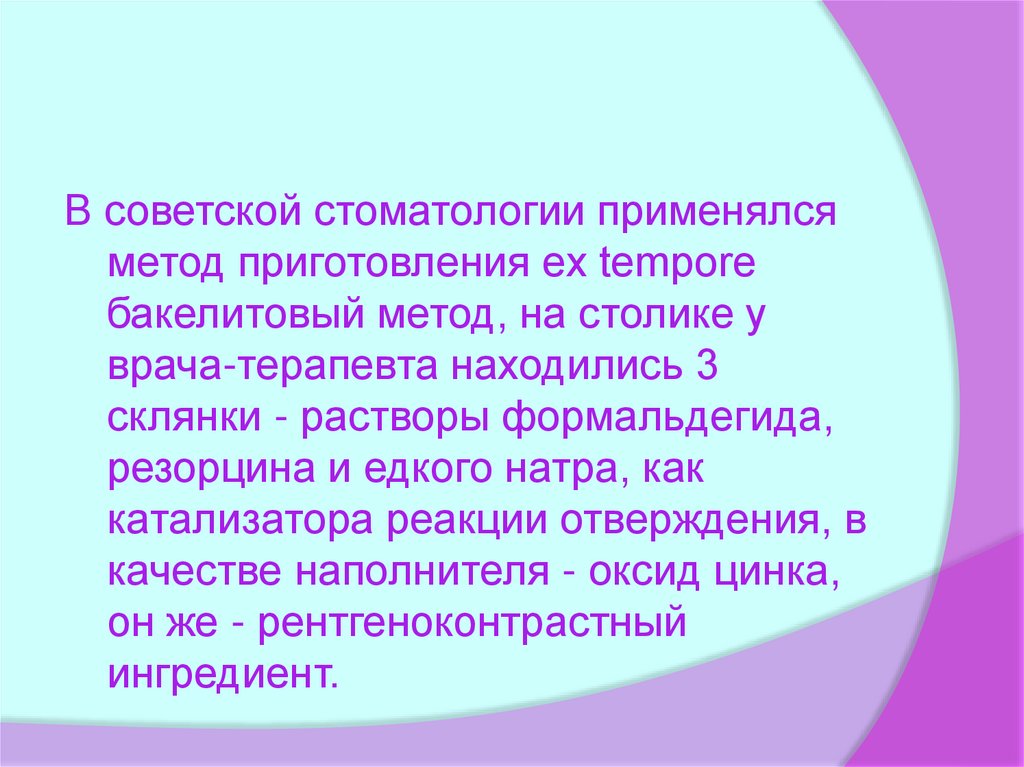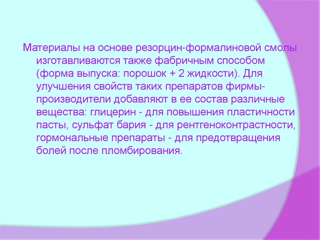 В основе препаратов этой группылежит резорцин-формалиновая»