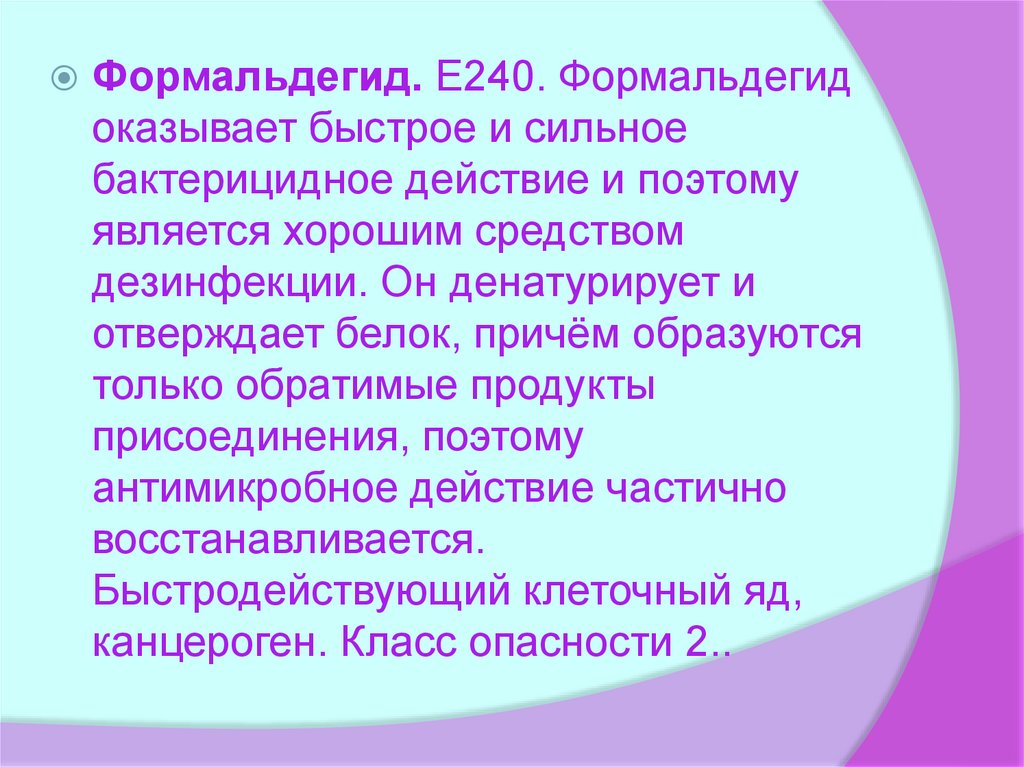 Формальдегид. E240. Формальдегидоказывает быстрое и сильное
