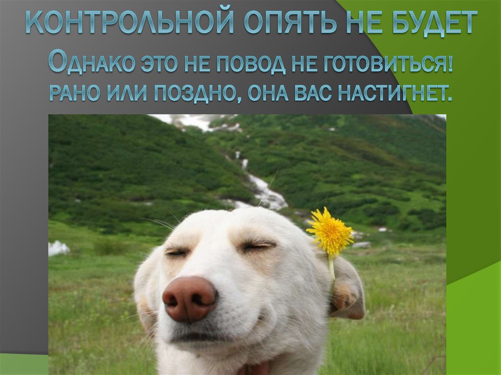 1. Контрольной опять не будет Однако это не повод не готовиться! Рано или поздно, она вас настигнет.